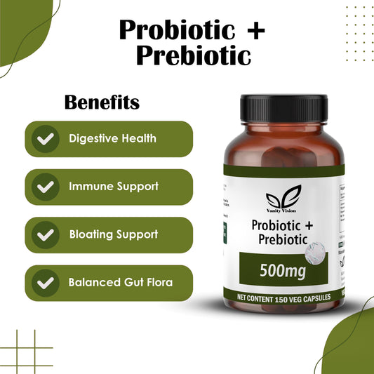 Probiotic + Prebiotic 500mg 150 Capsules โ Supports Gut Health & Digestive Balance