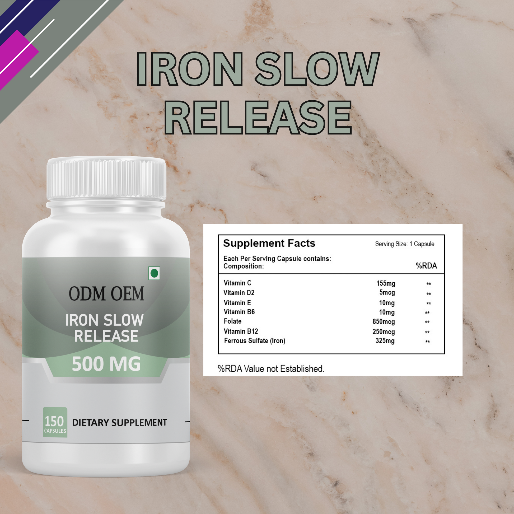 Helps with Iron Deficiency Anemia: Iron-deficiency anemia can cause symptoms such as pale skin, dizziness, and shortness of breath. Regular use of Vanity Vision Iron Slow Release Capsules can help restore iron levels, helping prevent or treat anemia and improving overall well-being.