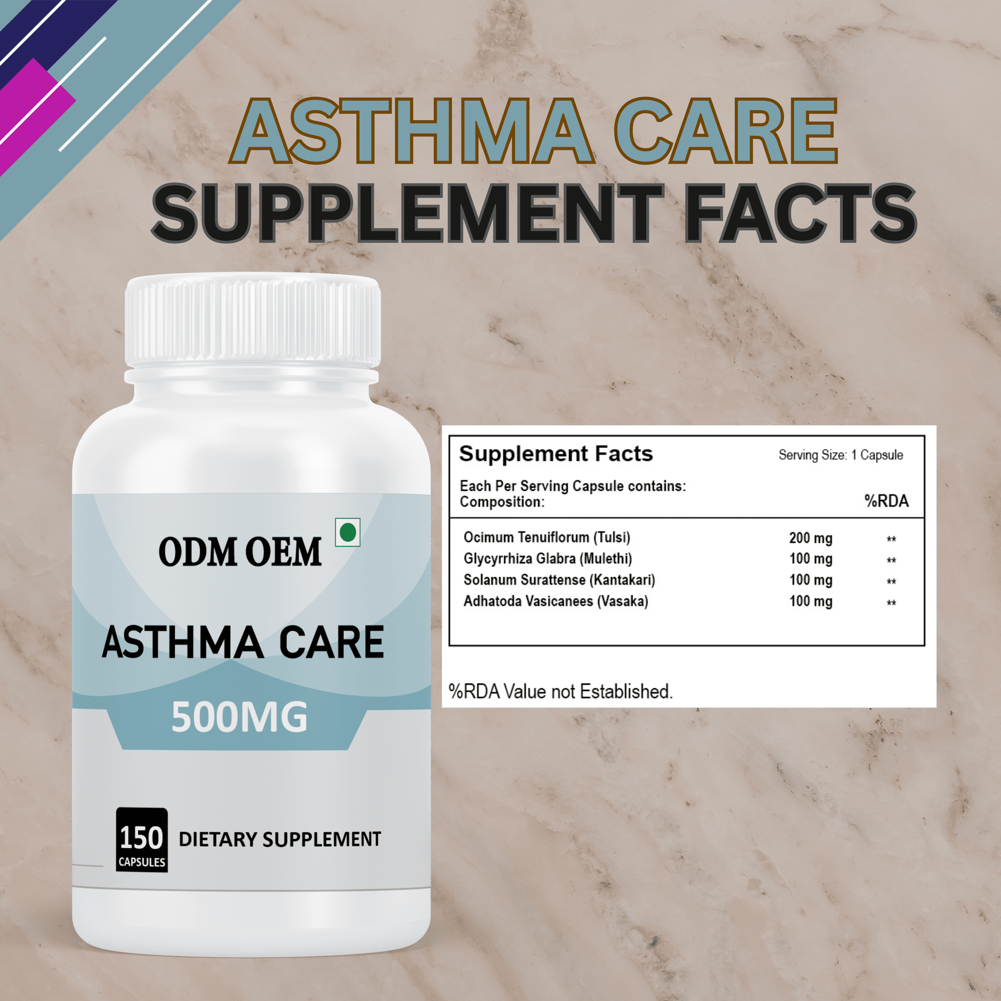 Vanity Vision Asthma Care 500mg is a potent herbal supplement formulated to support respiratory health and provide relief from the discomfort of asthma and other respiratory conditions. Combining the power of traditional Ayurvedic herbs, this supplement works synergistically to open airways, reduce inflammation, and support overall lung function.